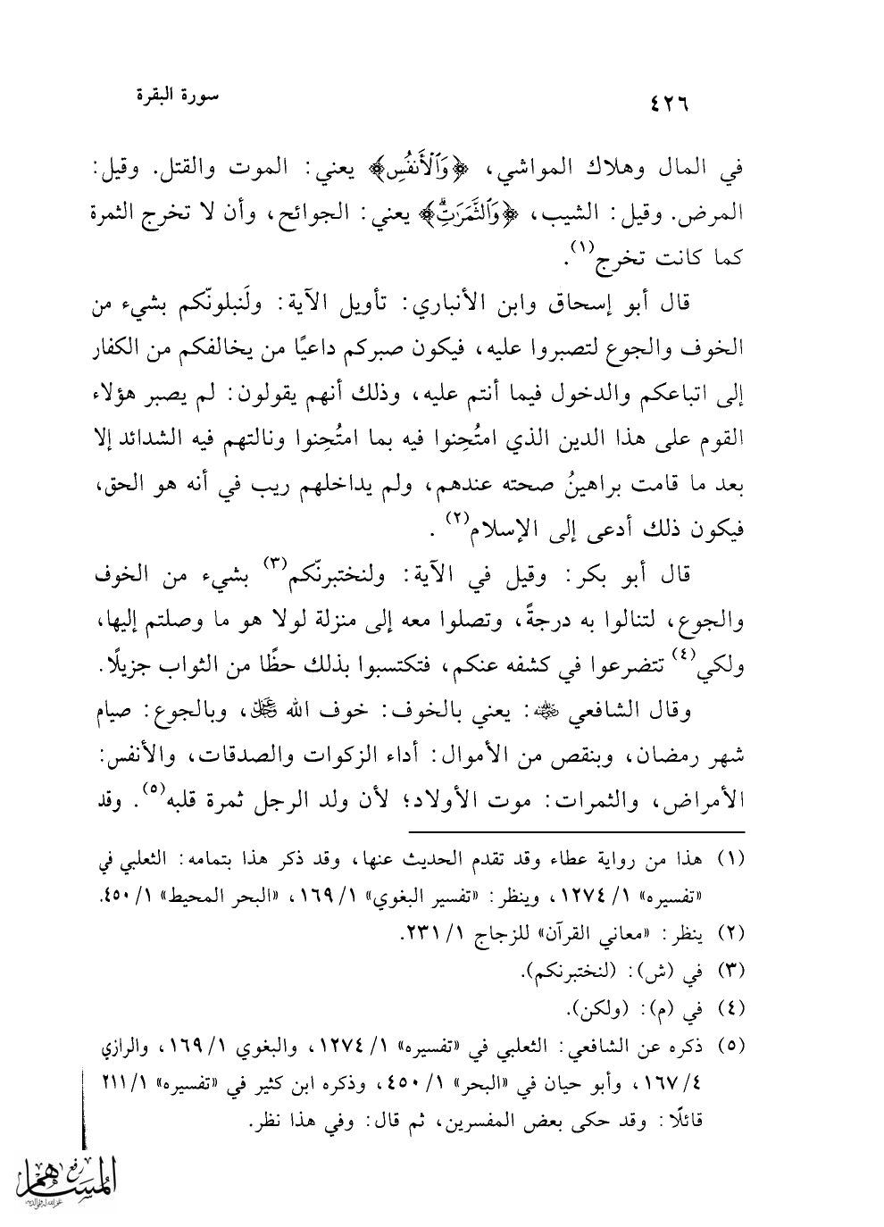 (¬5) ذكره عن الشافعي: الثعلبي في "تفسيره" 1/ 1274، والبغوي 1/ 169، والرازي 4/ 167، وأبو حيان في "البحر" 1/ 450، وذكره ابن كثير في "تفسيره" 1/ 211، قائلًا: وقد حكى بعض المفسرين، ثم قال: وفي هذا نظر.