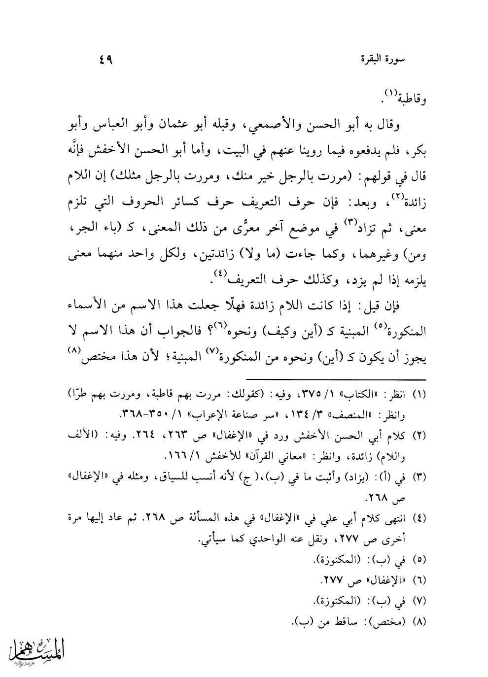 (¬2) كلام أبي الحسن الأخفش ورد في "الإغفال" ص 263، 264. وفيه: (الألف واللام) زائدة، وانظر: "معاني القرآن" للأخفش 1/ 166.