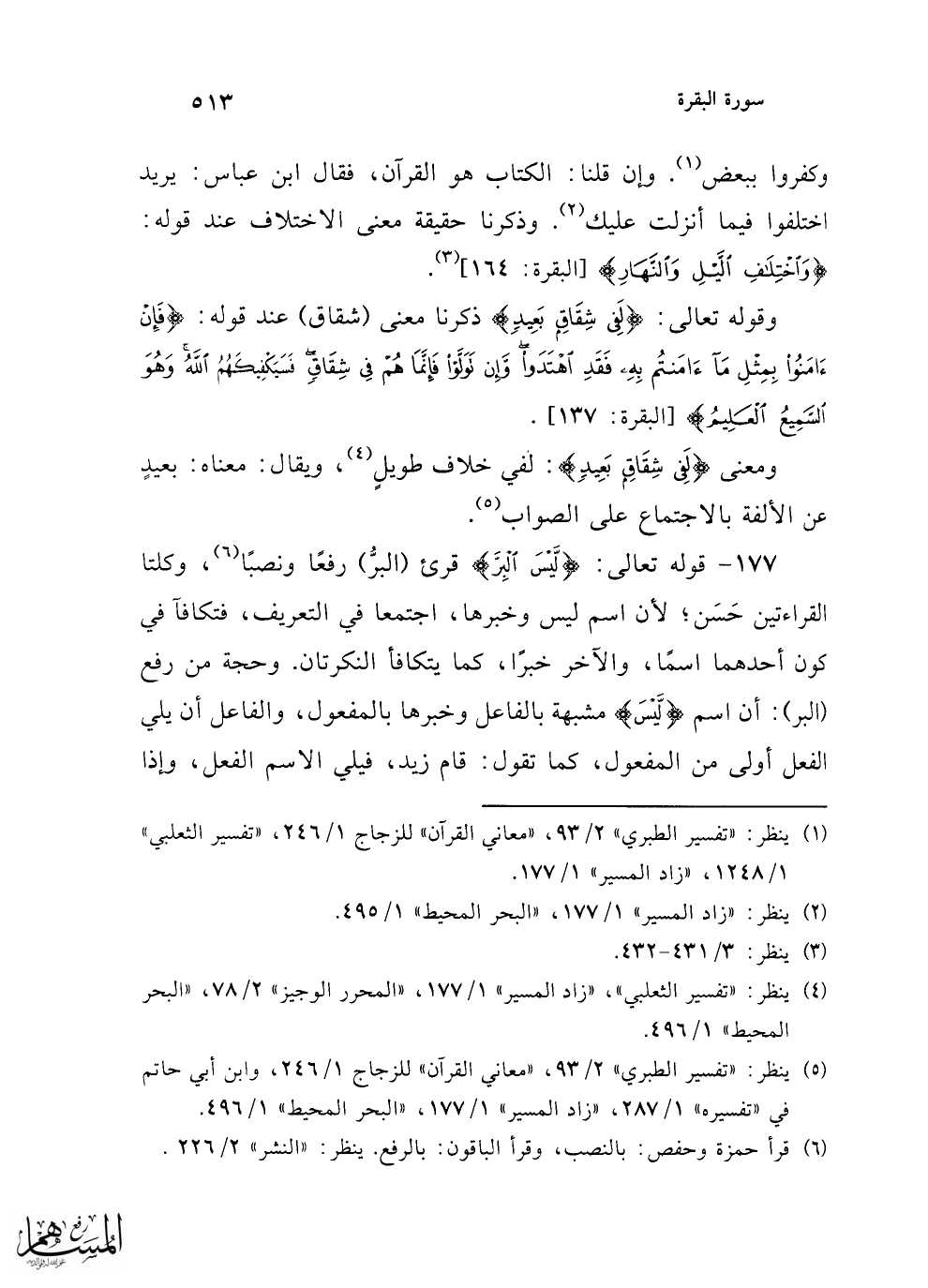 (¬2) ينظر: "زاد المسير" 1/ 177، "البحر المحيط" 1/ 495.