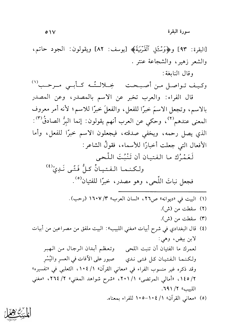 (¬5) "معاني القرآن" 1/ 104 - 105 للفراء بمعناه.