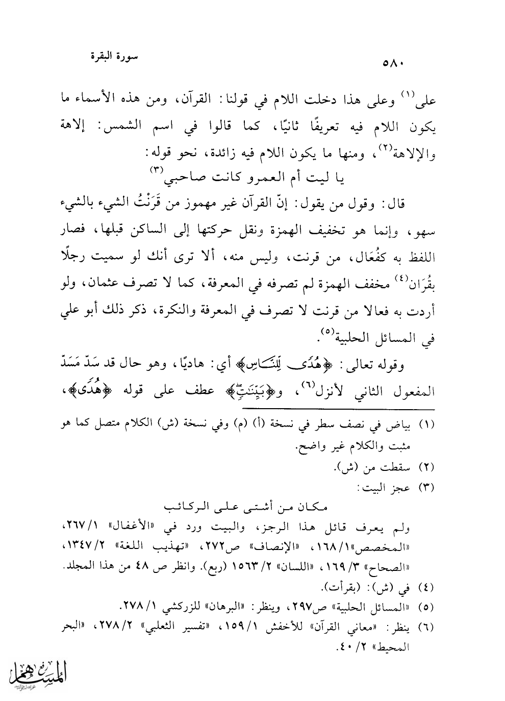 (¬5) "المسائل الحلبية" ص 297، وينظر: "البرهان" للزركشي 1/ 278.