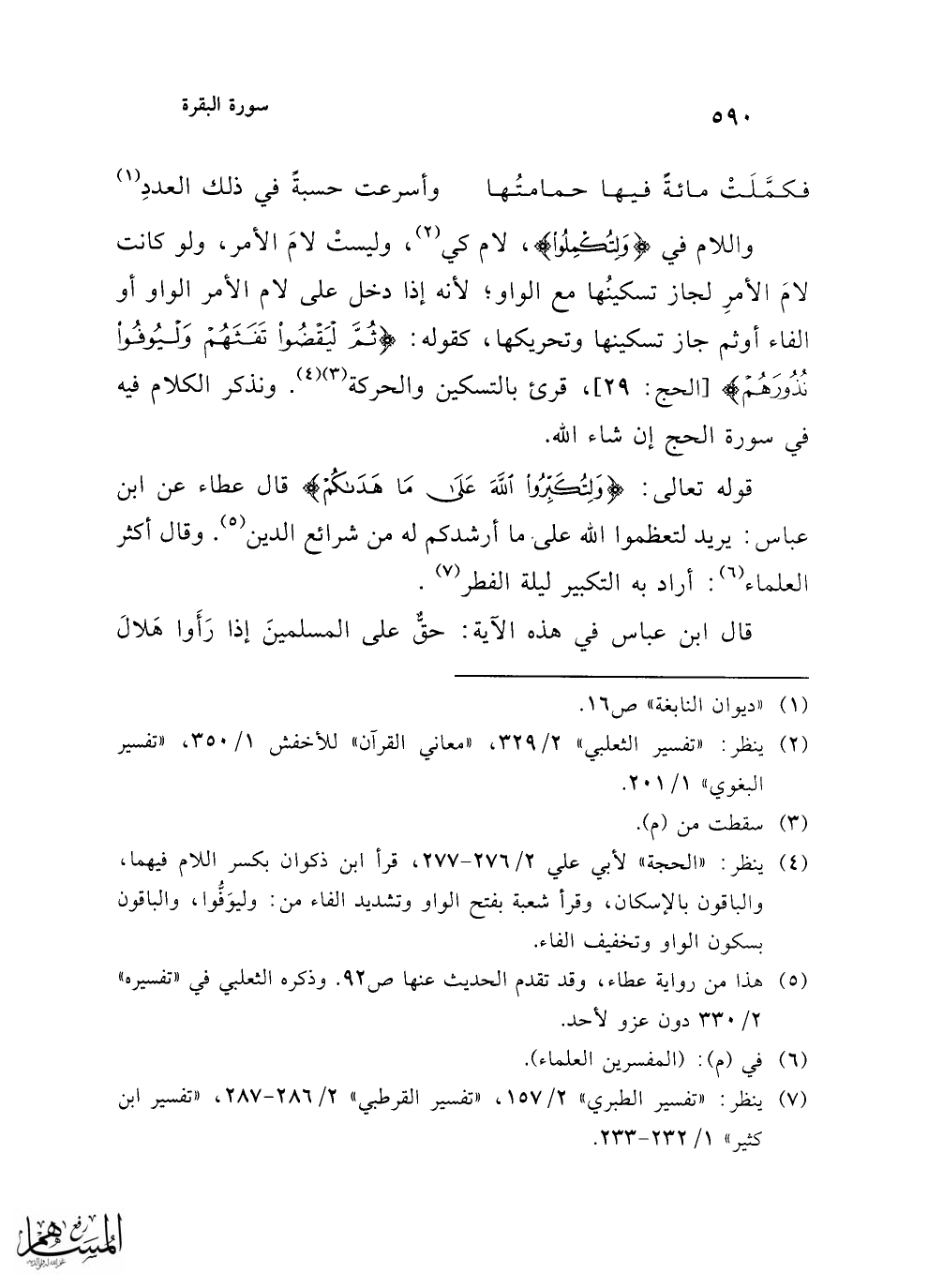 (¬7) ينظر: "تفسير الطبري" 2/ 157، "تفسير القرطبي" 2/ 286 - 287، "تفسير ابن كثير" 1/ 232 - 233.