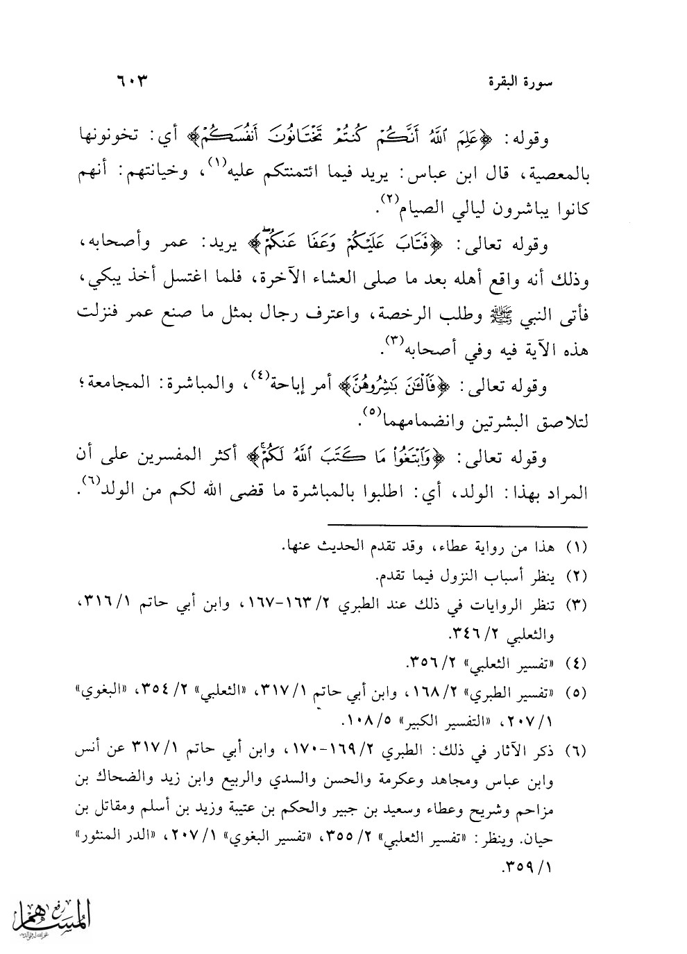 (¬5) "تفسير الطبري" 2/ 168، وابن أبي حاتم 1/ 317، "الثعلبي" 2/ 354، "البغوي" 1/ 207، "التفسير الكبير" 5/ 108.