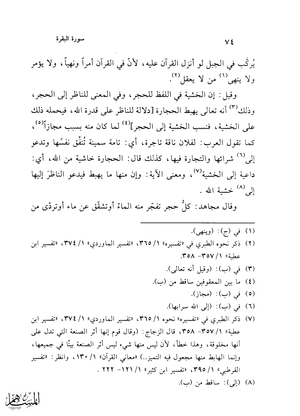 (¬2) ذكر نحوه الطبري في "تفسيره" 1/ 365، "تفسير الماوردي" 1/ 374، "تفسير ابن عطية" 1/ 357 - 358.