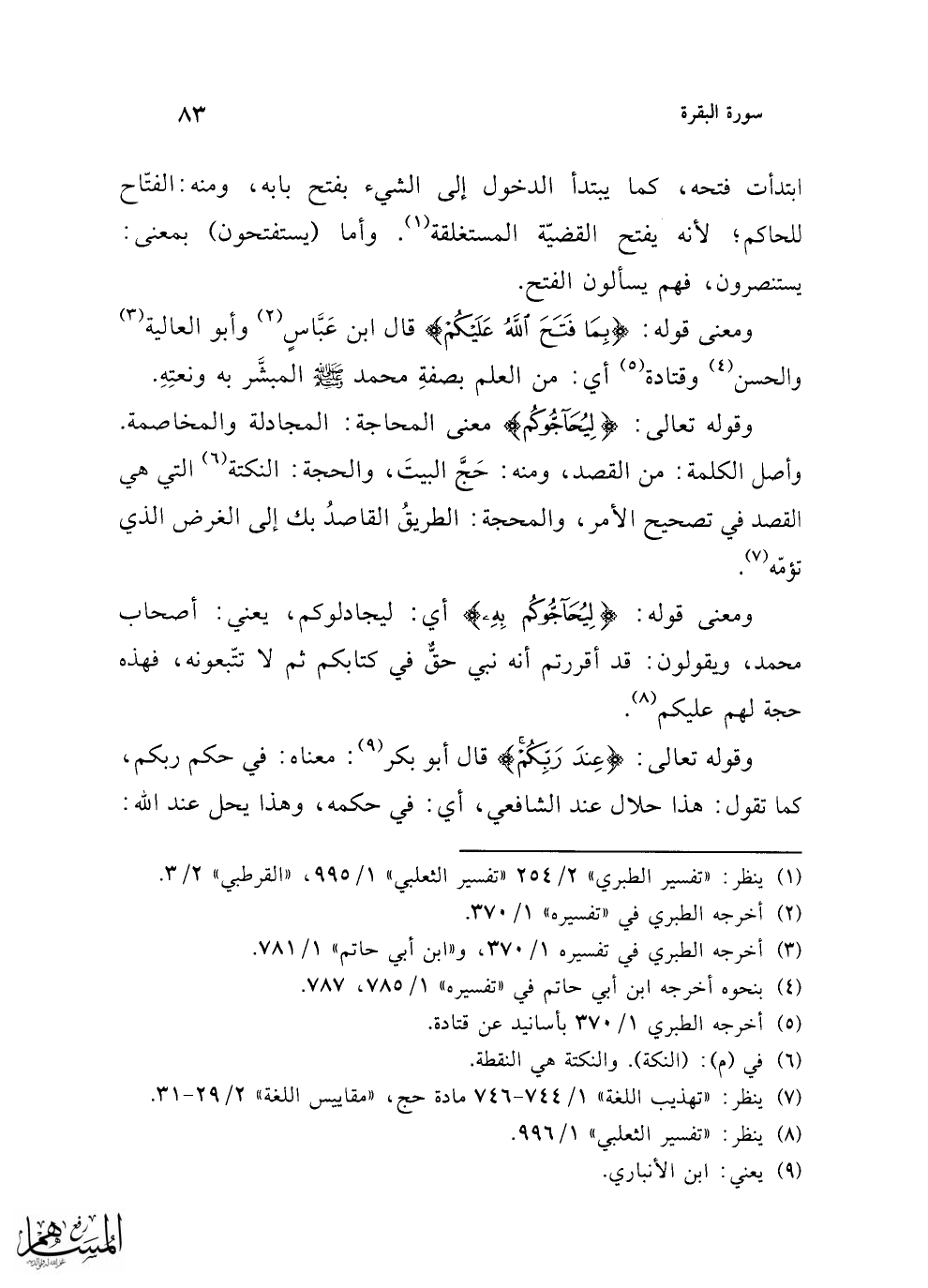 (¬2) أخرجه الطبري في "تفسيره" 1/ 370.