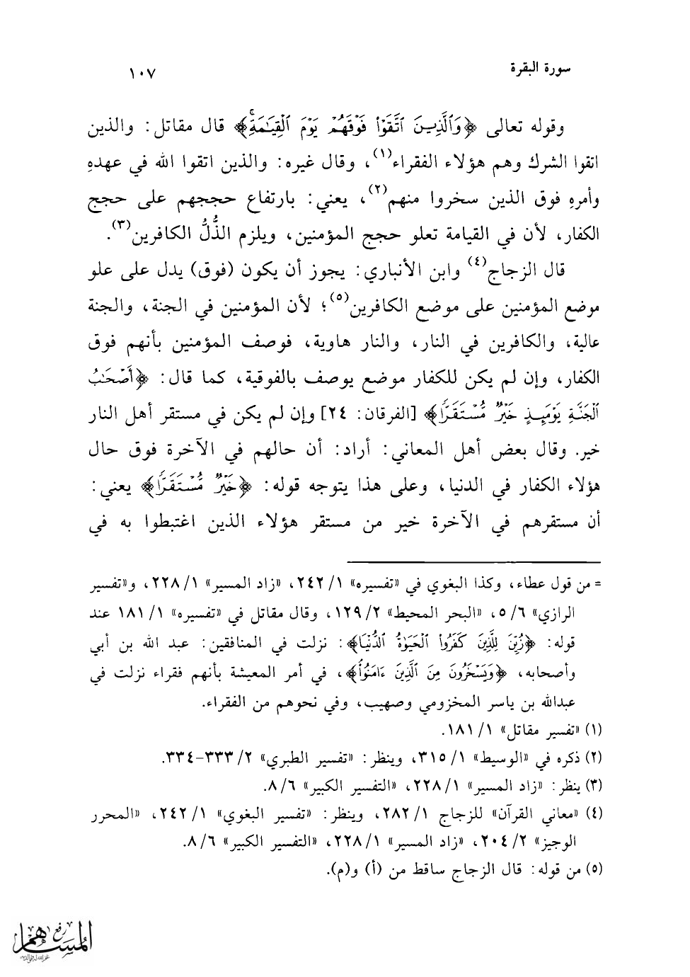 (¬2) هذا من تتمة الخبر السابق، عن عطاء، وقد تقدم تخريجه آنفا. وينظر في: "البحر المحيط" 1/ 131، "غرائب النيسابوري" 2/ 301، "الوسيط" للواحدي 1/ 315.