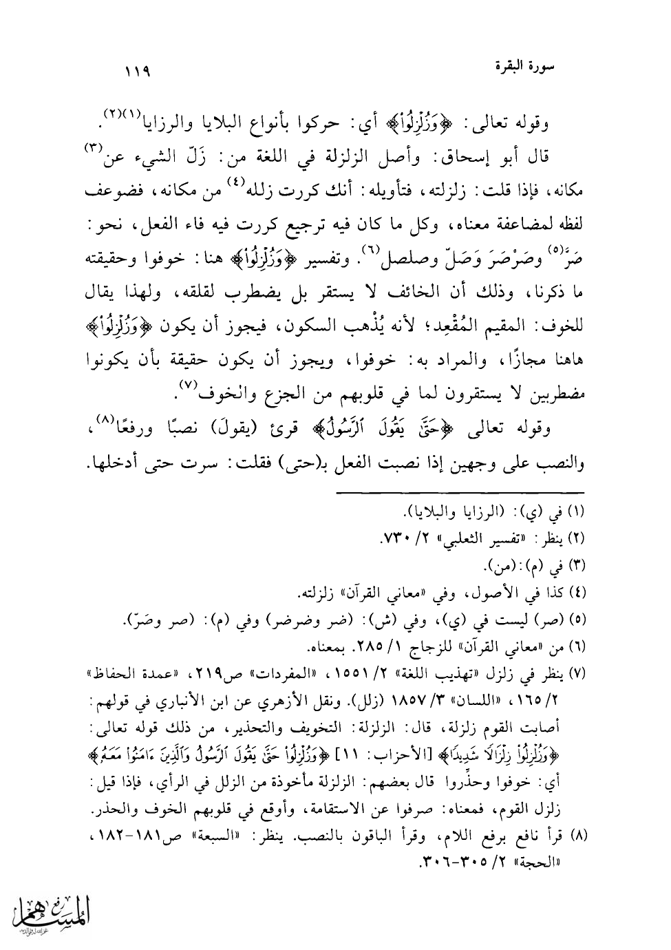 (¬3) رجح أبو حيان في "البحر" 2/ 140 الوجه الأول، قال: لأن المس والزلزال ليسا معلولين لقول الرسول والمؤمنين.