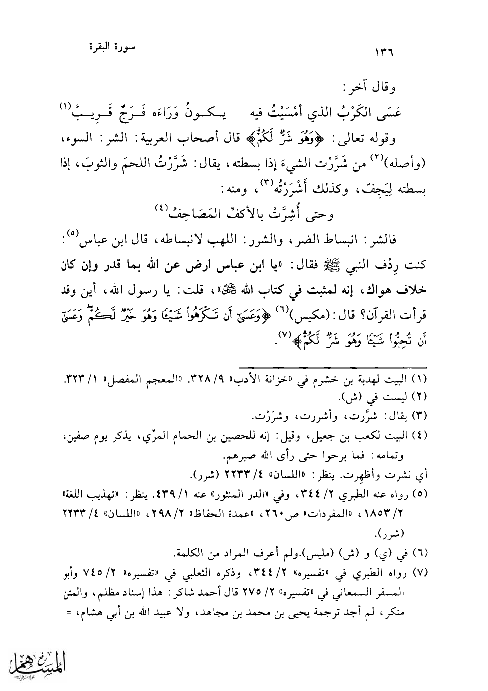 = ولا أدري ما هما، ولفظ الحديث لم أجده، ولا نقله أحد ممن ينقل عن الطبري. ينظر حاشية "تفسير الطبري" 4/ 299.