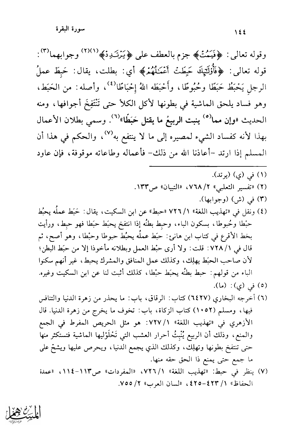 (¬4) ينظر في هجر "تهذيب اللغة" 4/ 3717، "المفردات" ص514 - 515، "عمدة الحفاظ" 4/ 278 - 280، "لسان العرب" 8/ 4617. قال الراغب: الهجْر والهِجران: مفارقة الإنسان غيره، إما بالبدن أو باللسان أو بالقلب.