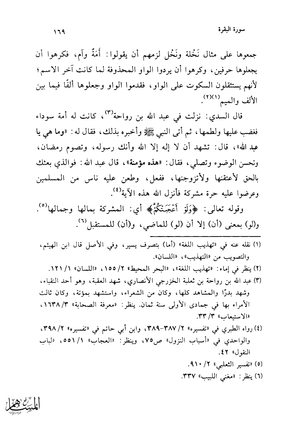 (¬5) ينظر: "إعراب القرآن" للنحاس 1/ 261، "التفسير الكبير" 6/ 66، "البحر المحيط" 2/ 166.