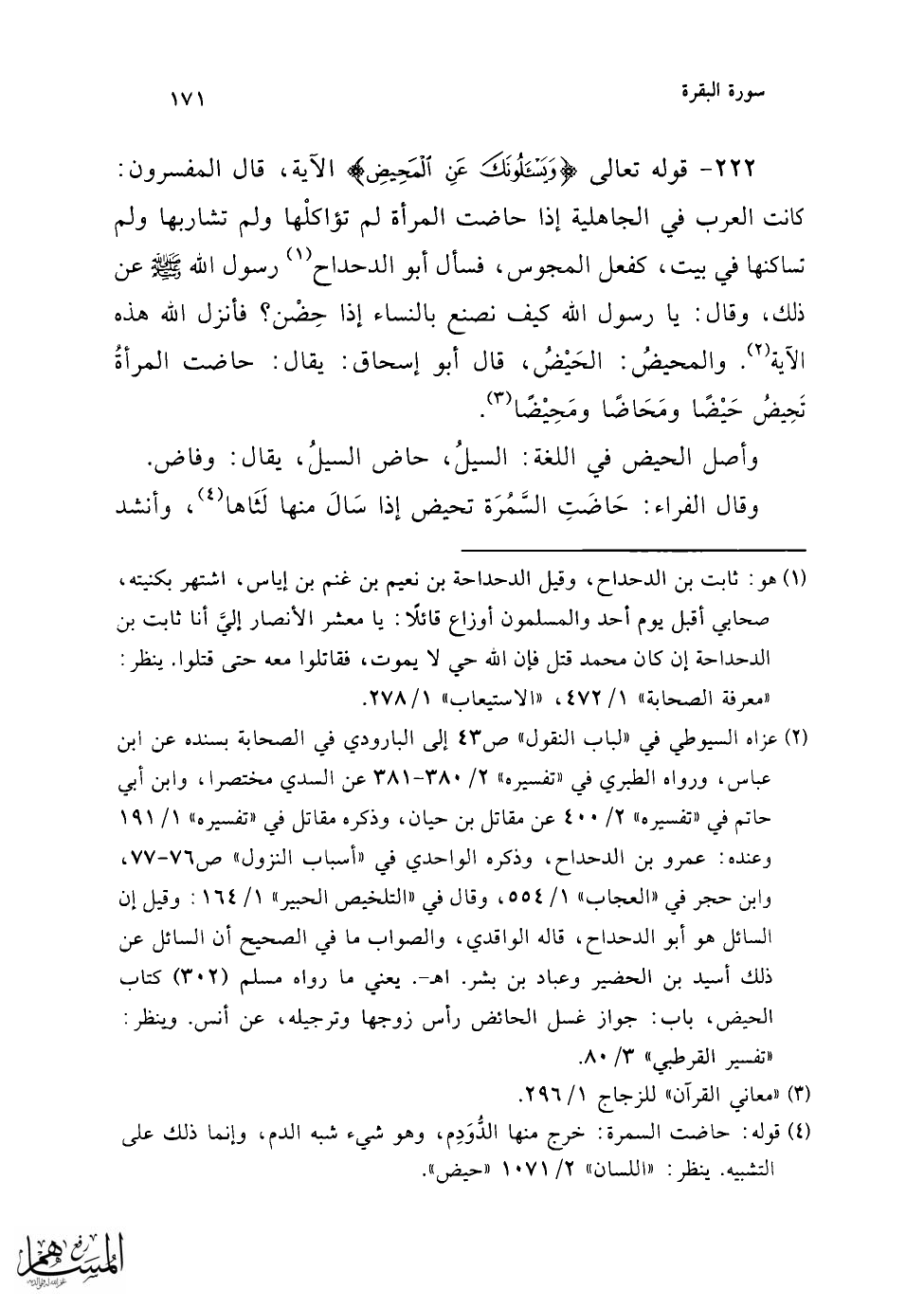 (¬5) ينظر: "تهذيب اللغة" 1/ 706، "اللسان" 2/ 1071 "حيض".