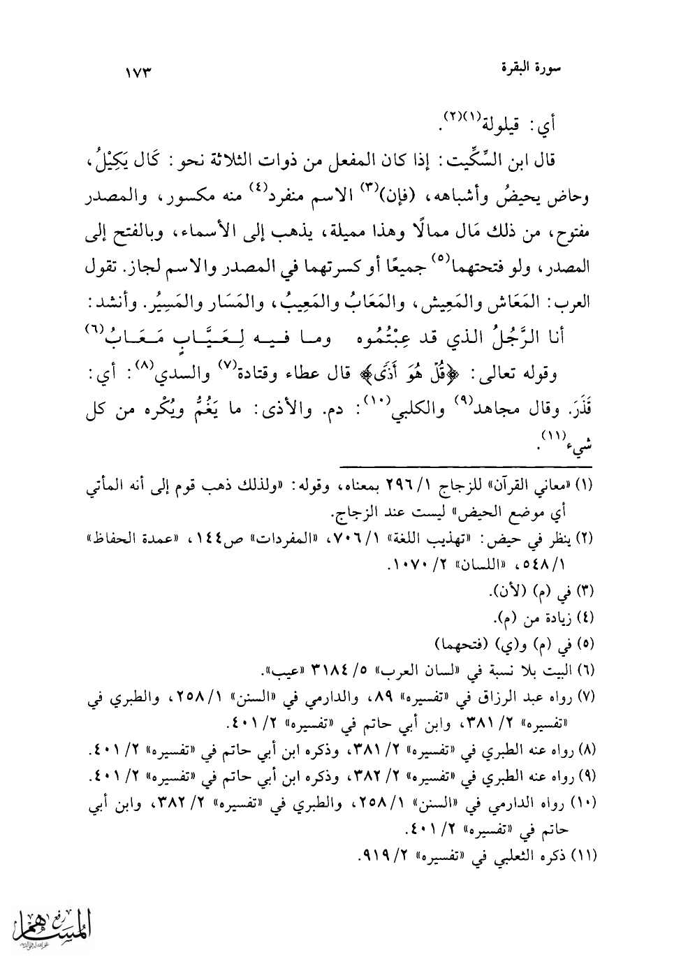 (¬6) هذا قول أبي حنيفة ومالك والشافعي والأوزاعي والجمهور، وقال الثوري ومحمد ابن الحسن وداود وبعض أصحاب الشافعي وهو الصحيح من قول الشافعي: يجتنب موضع الدم؛ لقوله - صلى الله عليه وسلم -: "اصنعوا كل شيء إلا النكاح". ينظر: "التفسير الكبير" 6/ 72، "تفسير القرطبي" 3/ 87.