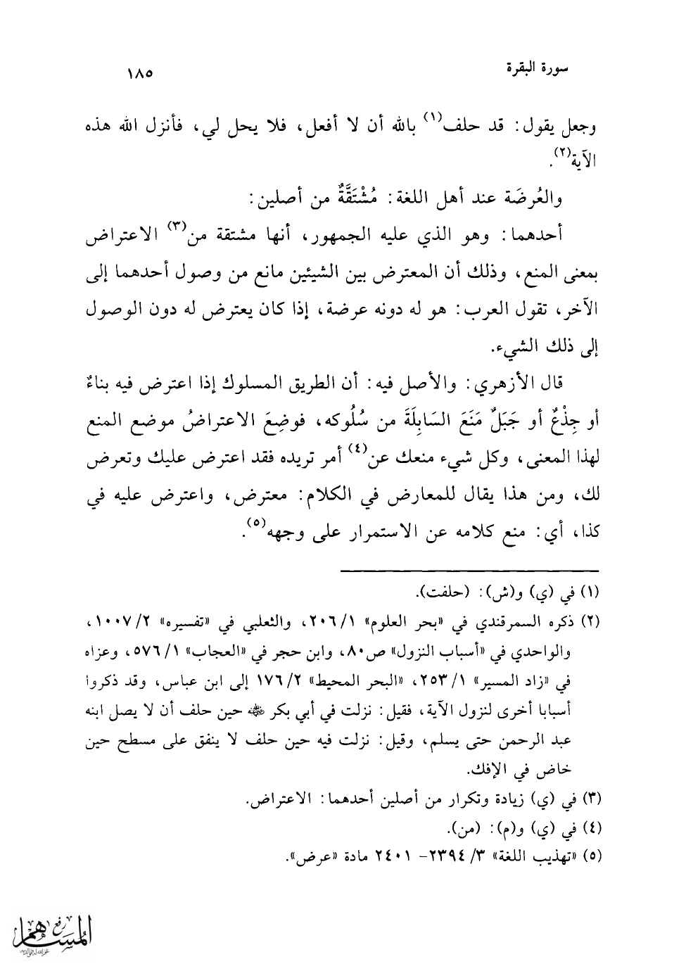 (¬3) ينظر: "تفسير الطبري" 2/ 400 - 402، "تفسير ابن أبي حاتم" 2/ 407، "تفسير غريب القرآن" لابن قتيبة ص 77، "تفسير الثعلبي" 2/ 1011.