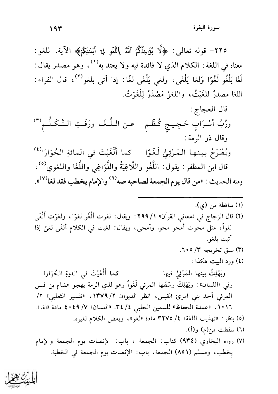 (¬11) ينظر لغا: "معاني القرآن" للزجاج 1/ 299، "تهذيب اللغة" 4/ 3275 - 3276، "تفسير الثعلبي" 2/ 1016، "المفردات" ص 455، "عمدة الحفاظ" 4/ 33 =
