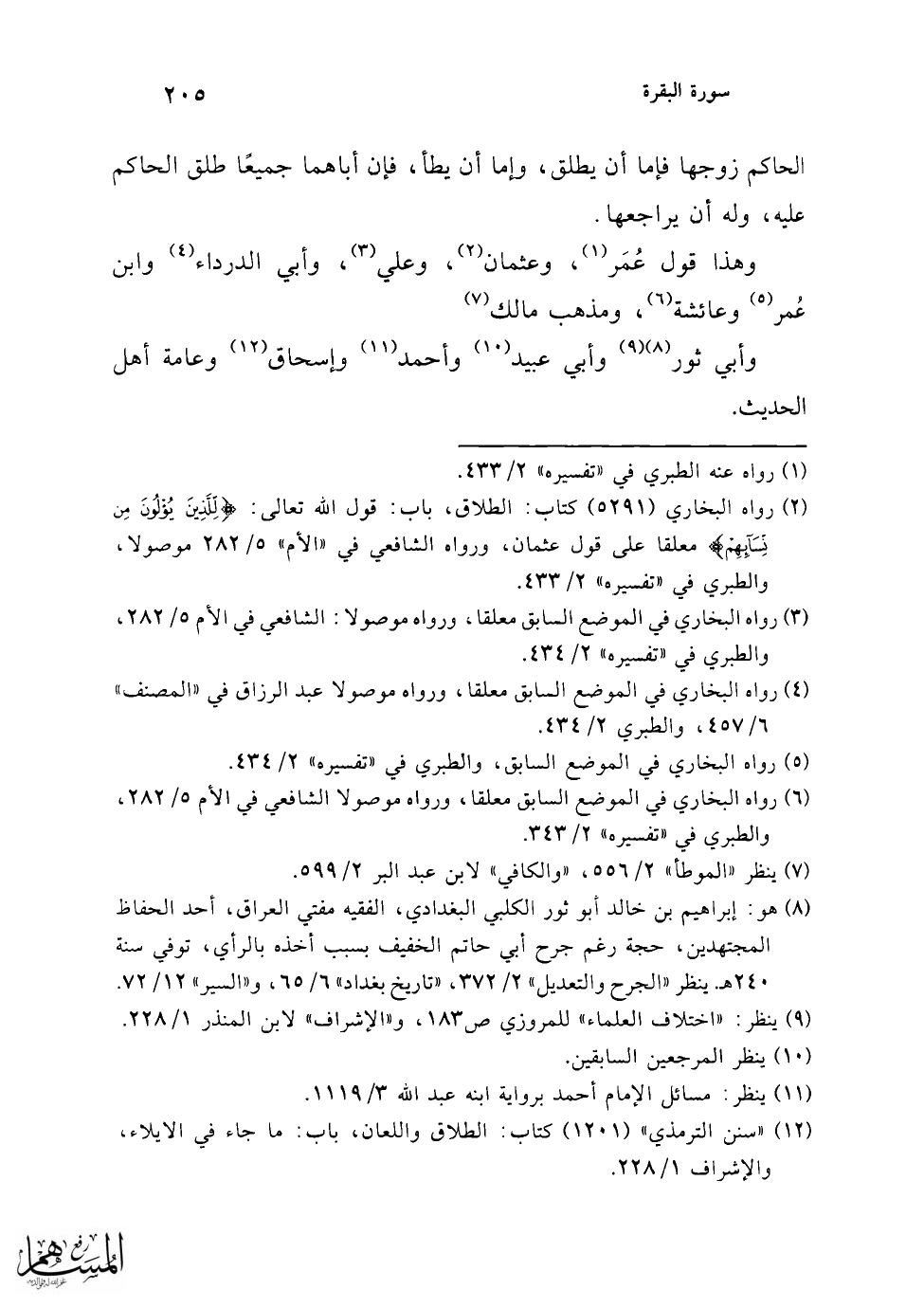 (¬8) رواه عنه الطبري في "تفسيره" 2/ 423، وعبد الرزاق في "المصنف" 6/ 462.