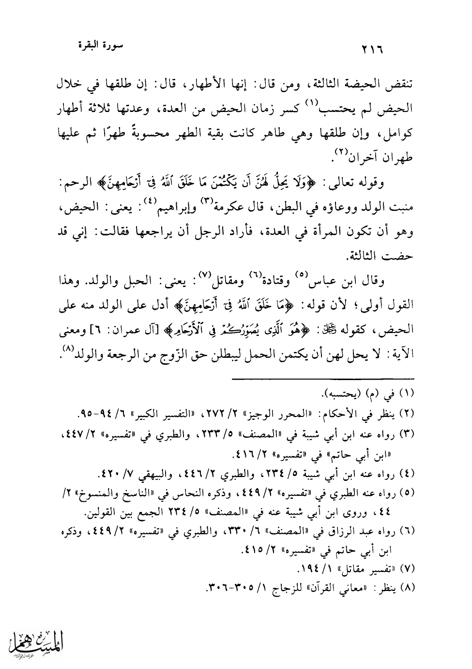 وقال عطاء عن ابن عباس في قوله: {وَلَا يَحِلُّ لَهُنَّ} الآية، وذلك أن المرأة السوء تكتم الحبل شوقًا منها إلى الزوج، وتستبطئ (¬1) العدة؛ لأن عدة ذات الحمل أن تضع حملها (¬2)، ذكر هذا في سورة الحج في قوله: {وَنُقِرُّ فِي الْأَرْحَامِ مَا نَشَاءُ} [الحج: 5].