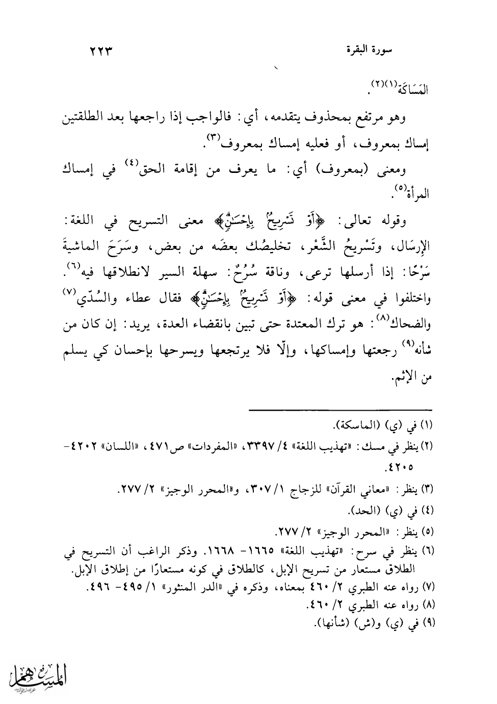 وقيل: قوله: {أَوْ تَسْرِيحٌ بِإِحْسَانٍ} أراد به: الطلقة الثالثة، روي ذلك عن النبي - صلى الله عليه وسلم -، أن رجلًا قال له: أسمعُ الله يقول: {الطَّلَاقُ مَرَّتَانِ} فأين الثالثة؟ قال: قوله: {فَإِمْسَاكٌ بِمَعْرُوفٍ أَوْ تَسْرِيحٌ} هو الثالثة (¬1).