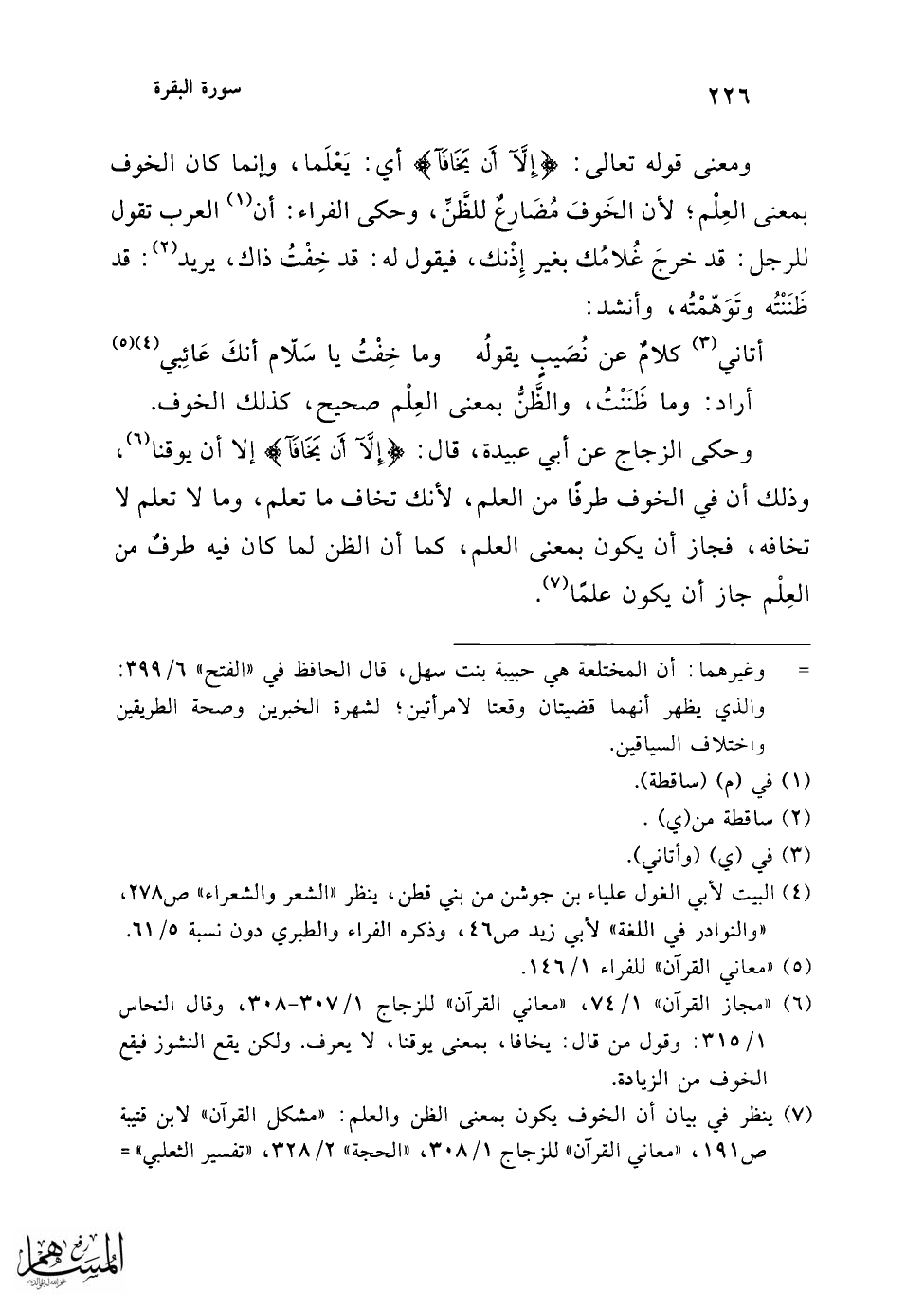 = 2/ 1090، "البحر المحيط" 1/ 197، وقال: والأولى بقاء الخوف على بابه، وهو أن يراد به الحذر من الشيء فيكون المعنى: إلا أن يعلم أو يظن أو يوقن أو يحذر كل واحد منهما بنفسه أن لا يقيم حقوق الزوجية لصاحبه حسبما يجب فيجوز الأخذ.