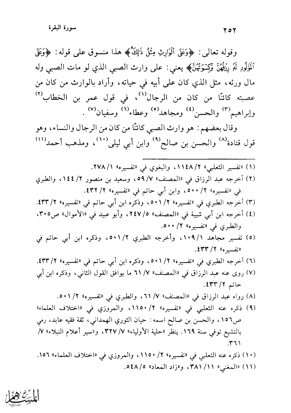 (¬1) "اختلاف العلماء" للمروزي ص 156، "تفسير الثعلبي" 2/ 1151.