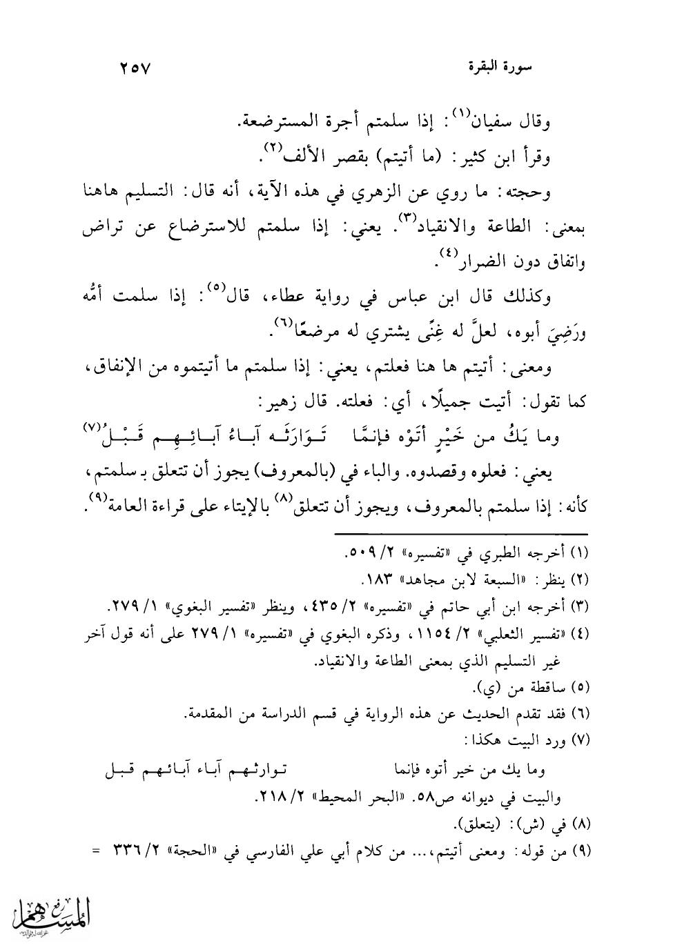 (¬4) عزاها إليه ابن جني في "المحتسب" 1/ 125، وأبو حيان في "البحر المحيط" 2/ 223.