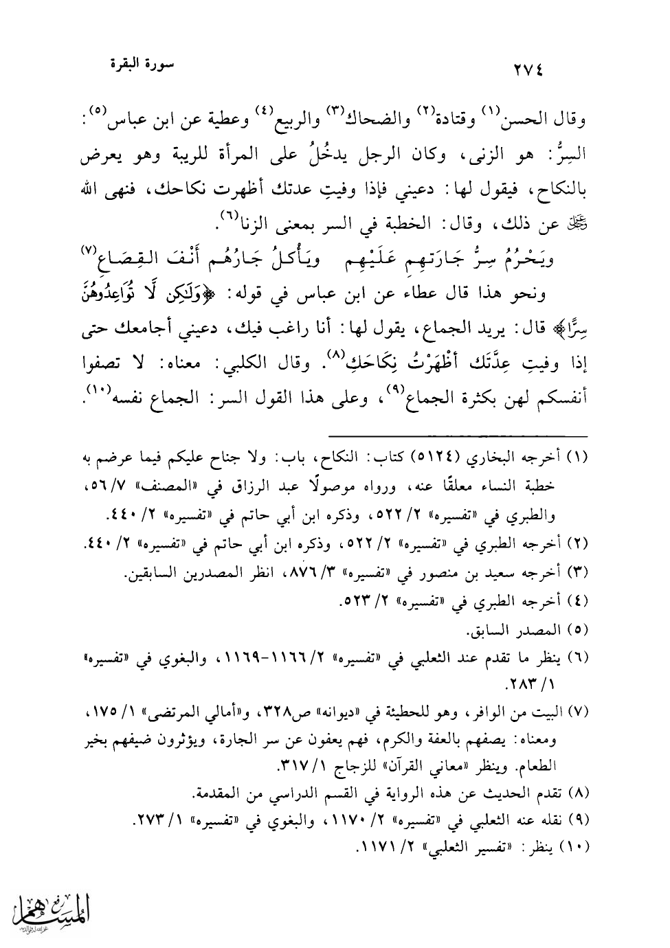 فحصل في السرِّ أربعة أقوال: النكاح، والجماع، والزنا، والسِرّ الذي تخفيه وتكتمه غيرك.