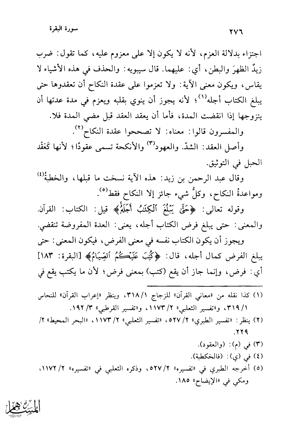 (¬3) "تفسير الثعلبي" 2/ 1175 - 1179، وينظر "تفسير الطبري" 2/ 538 - 539، و"تفسير البغوي" 1/ 284، و"البحر المحيط" 2/ 232.