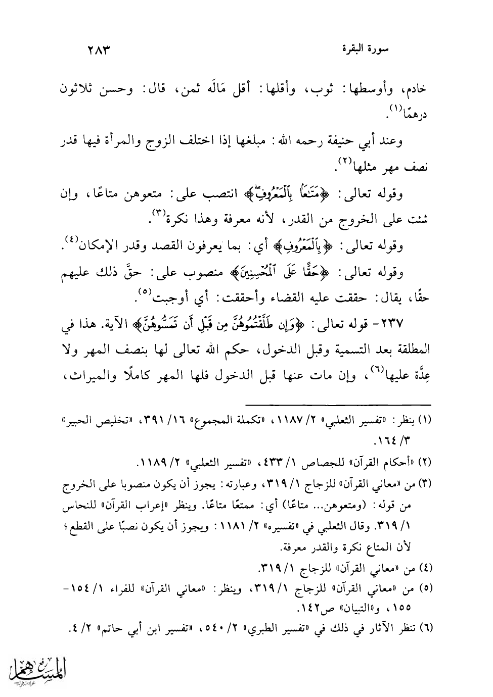 (¬1) "تفسير الثعلبي" 2/ 1193، "تفسير البغوي" 1/ 286.