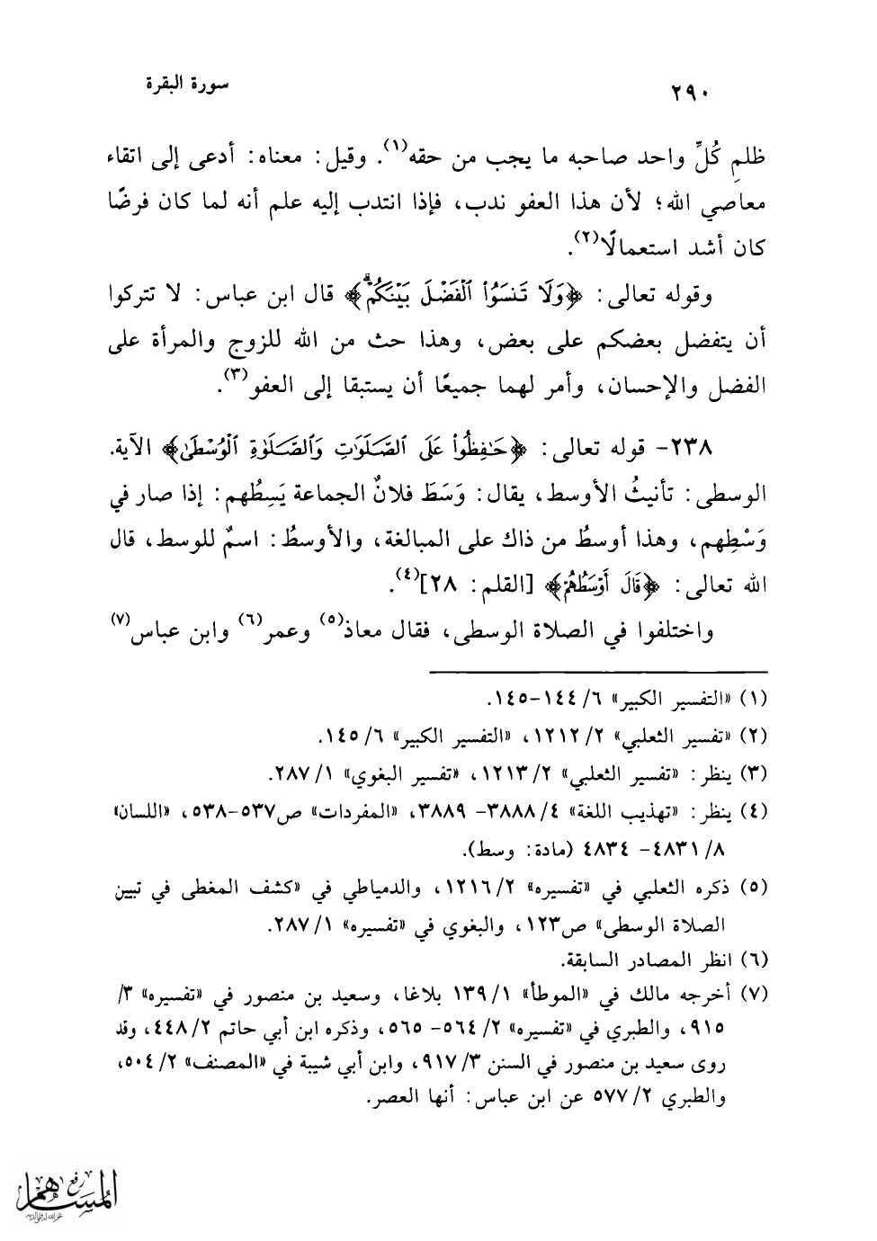 (¬5) أخرجه سعيد بن منصور في "تفسيره" 3/ 912، والطبري في "تفسيره" 2/ 566، وذكره ابن أبي حاتم في "تفسيره" 2/ 448.