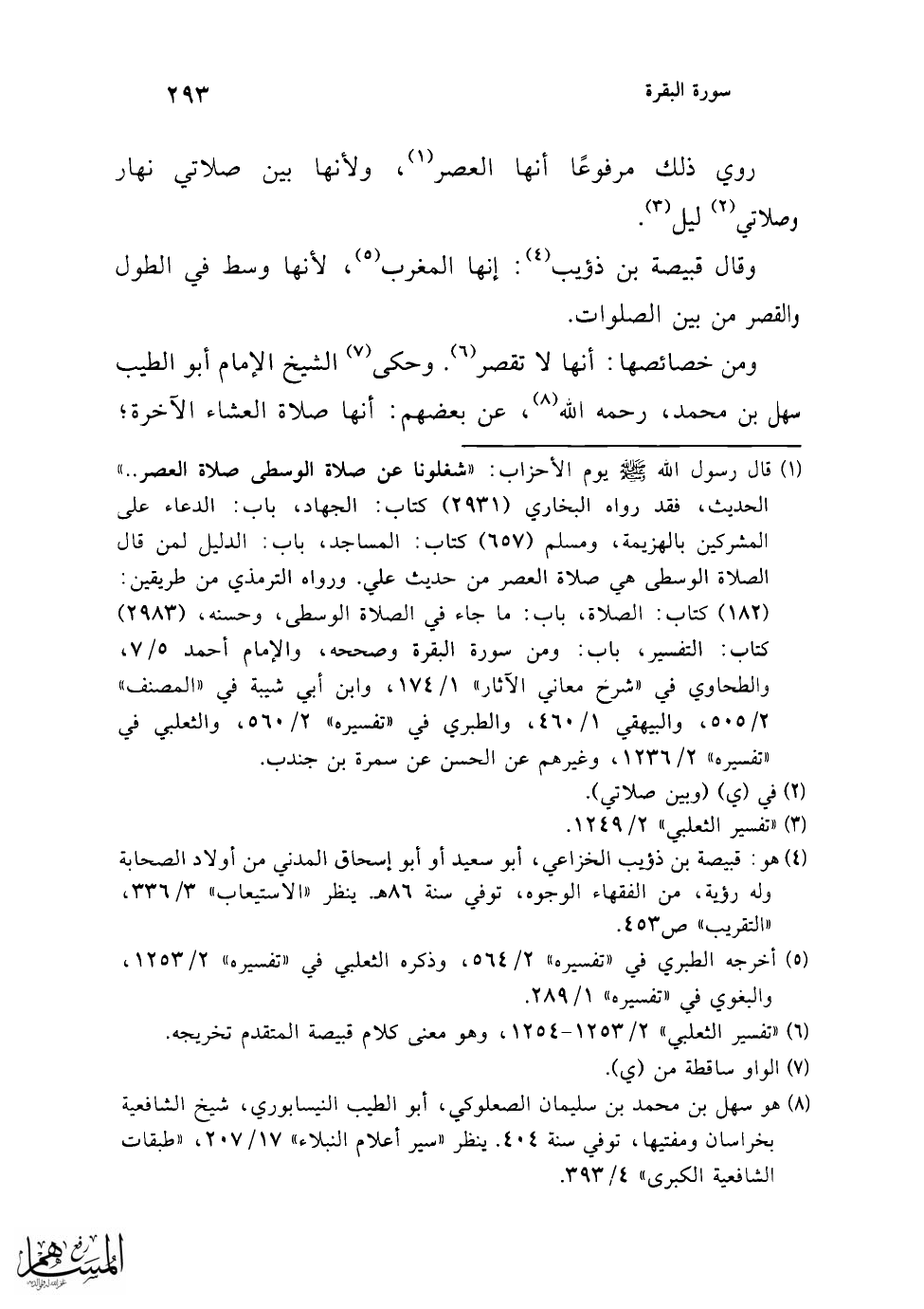 (¬4) ينظر: "تفسير الطبري" 2/ 566، "تفسير الثعلبي" 2/ 1260.