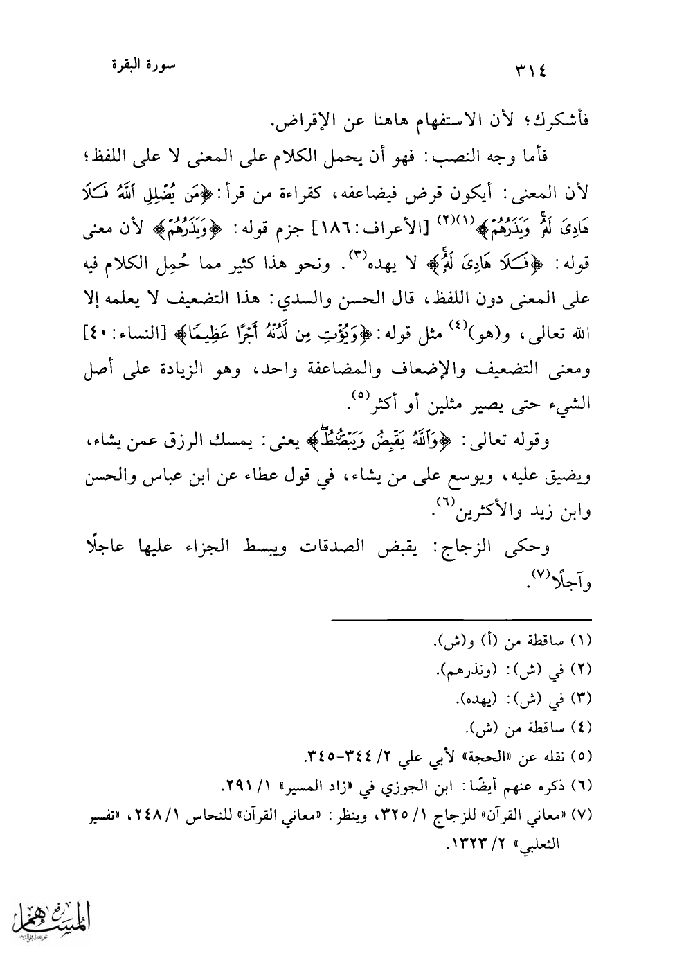 (¬3) "تفسير الثعلبي" 2/ 1323، "عجائب التأويل للكرماني" 1/ 221، "البحر المحيط" 2/ 253.