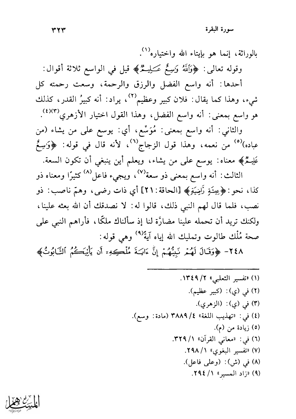 (¬4) تنظر القصة بطولها في: "تفسير الطبري" 2/ 607 - 608، "تاريخ الأمم والملوك" 1/ 469، "تفسير الثعلبي" 2/ 1358 - 1362، "تفسير البغوي" 1/ 298 - 299، "البحر المحيط" 2/ 261.