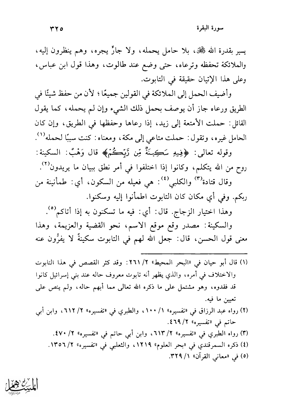 (¬6) تنظر الآثار في ذلك: عند سعيد بن منصور في "سننه" 3/ 948، والطبري في "تفسيره" 2/ 613 - 615، وابن أبي حاتم 2/ 470 - 471، والثعلبي في "تفسيره" 2/ 1357.