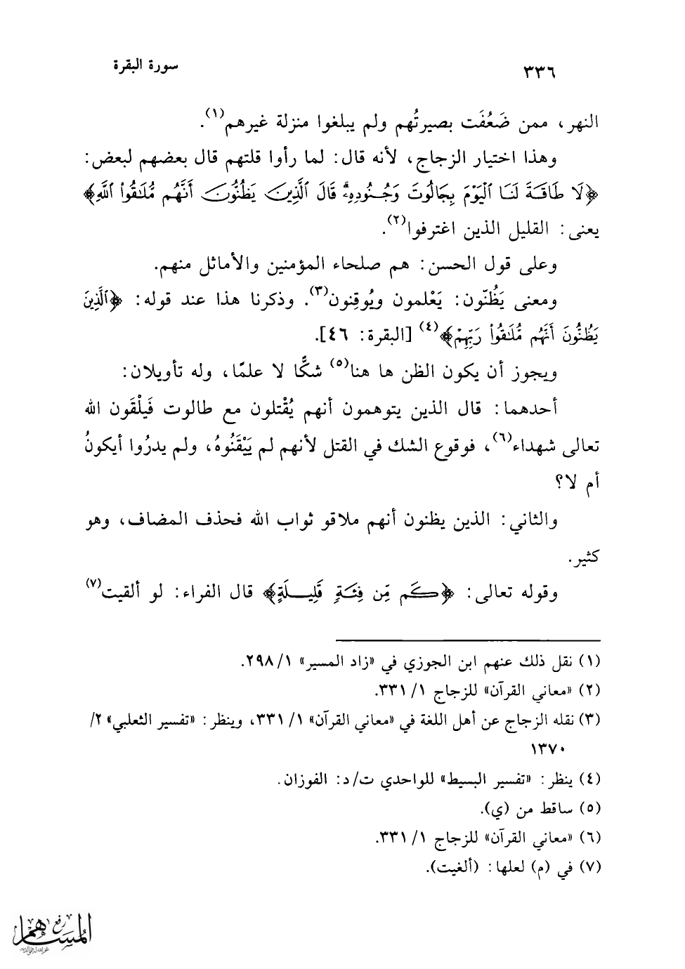 (¬6) كذا إلى هنا نقل من "معاني القرآن" للفراء 1/ 168 - 169. وينظر في الإعراب: "إعراب القرآن" للنحاس 1/ 327، "التبيان" 149، "البحر المحيط" 2/ 268.