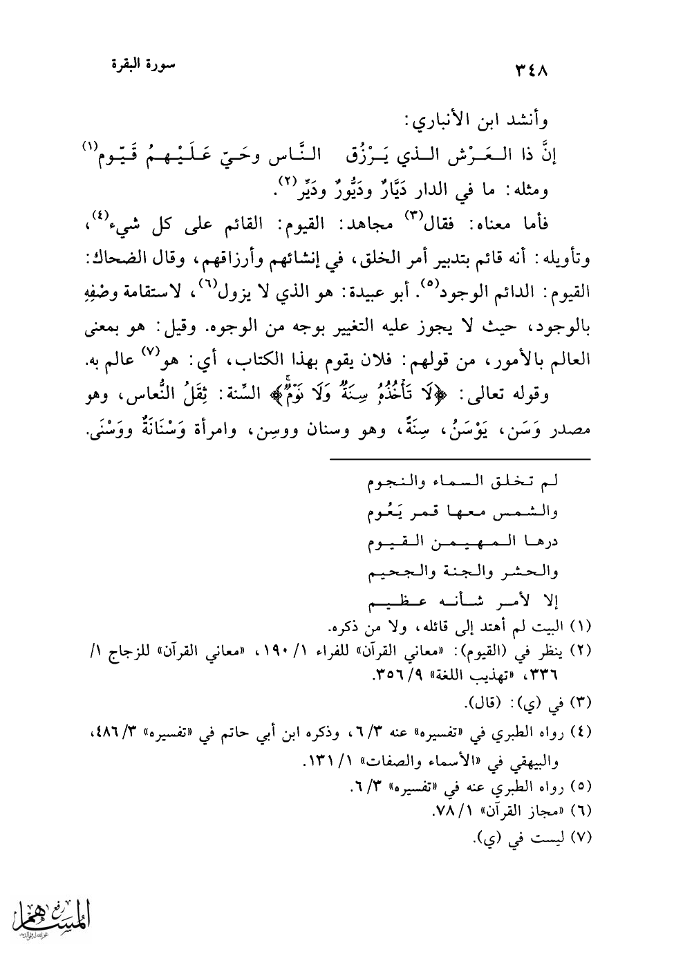 (¬6) البيت في "ديوانه" ص 122، وذكره في "مجاز القرآن" 1/ 78، "غريب القرآن" ص 84، والأغاني 8/ 181، وفي "اللسان" 8/ 4839 مادة "وسن". والإقصاد: أن يصيبه السهم فيقتله من فوره، وهو هنا استعارة، أي: أقصد النعاس فأنامه، رنقت: دارت وماجت، "سمط اللآلئ" 1/ 521.