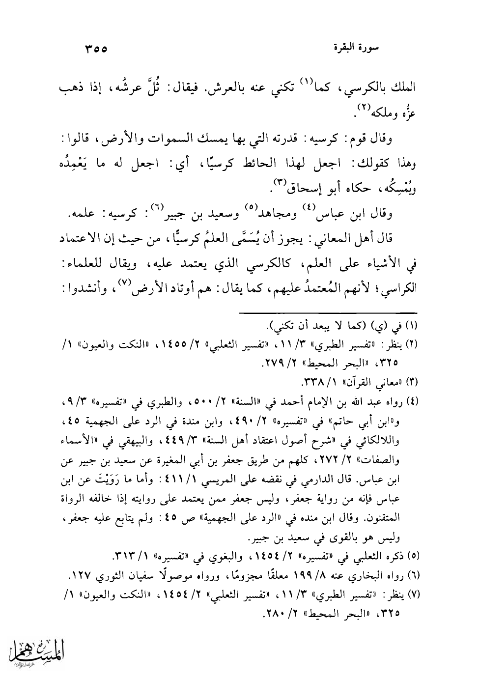 (¬7) "تهذيب اللغة" 4/ 3126، وهذا لفظه في نسخة خطية أشار إليها محققو التهذيب، ونقلها صاحب "اللسان" 7/ 3855 مادة (كرس)، ولفظه في النسخة المطبوعة: والذي روي عن ابن عباس في الكرسي، فليس مما يثبته أهل المعرفة بالأخبار. وفي "مجموع الفتاوى" 6/ 584 سئل شيخ الإسلام ابن تيمية: هل العرش والكرسي موجودان، أو أن ذلك مجاز؟ فأجاب: الحمد لله، بل العرش موجود =