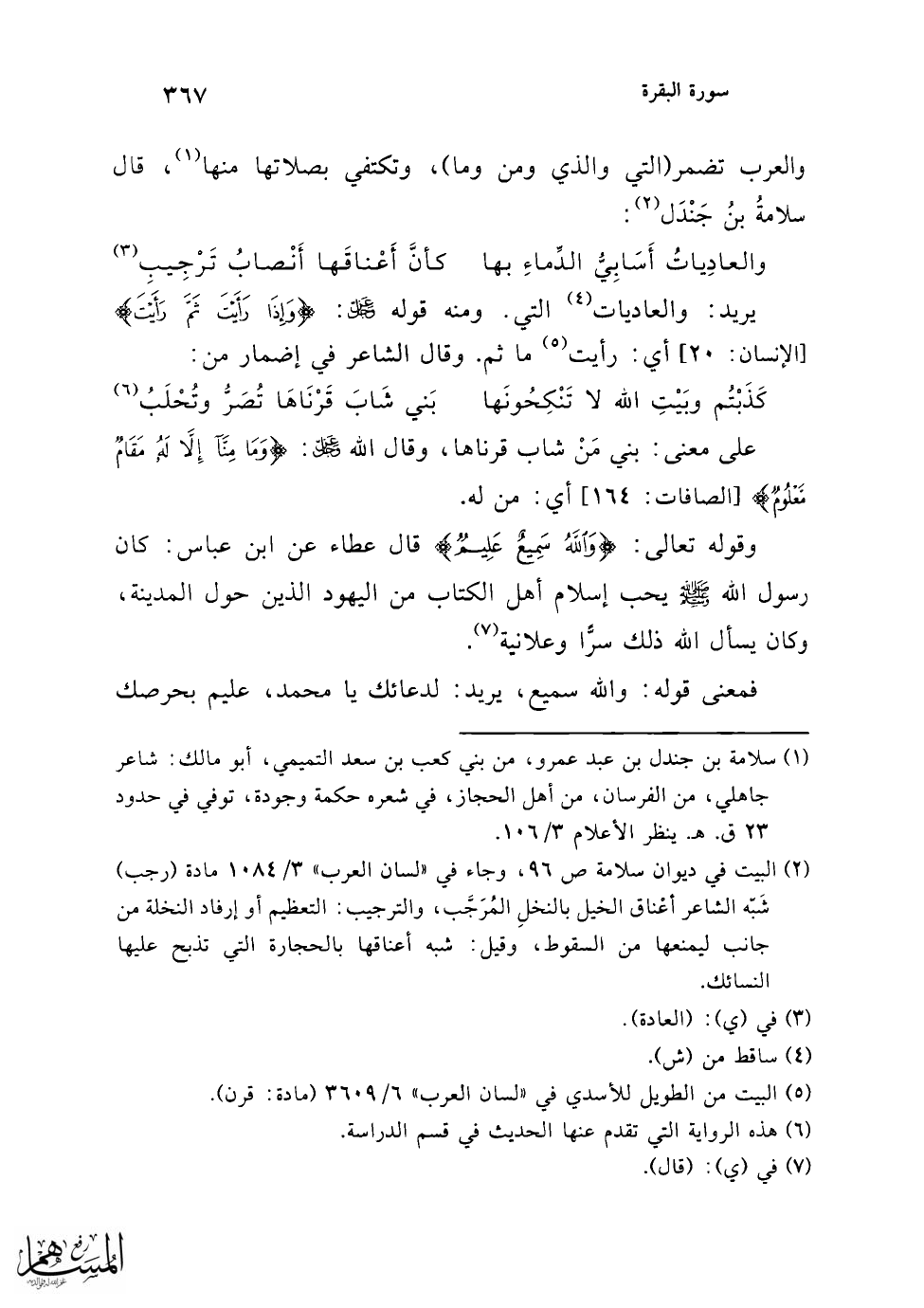 257 - قوله تعالى: {اللَّهُ وَلِيُّ الَّذِينَ آمَنُوا} الآية، الوَلِيُّ: فعيل بمعنى فاعل، من قولهم: وَلِيَ فلانٌ الشيءَ يَلِيهِ ولايةً فهو والٍ وَوَليِّ (¬3)، وأصله من الوَلْيِ الذي هو القُرْب، قال الهذلي (¬4):
