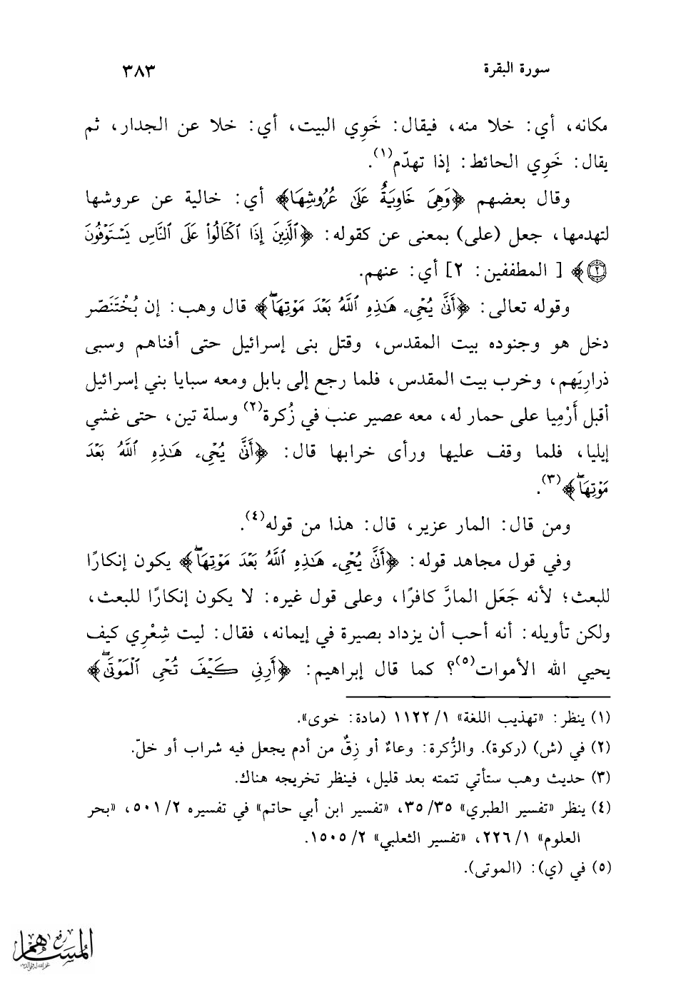 (¬1) ينظر: "تفسير الطبري" 3/ 35، "تفسير الثعلبي" 2/ 1505.