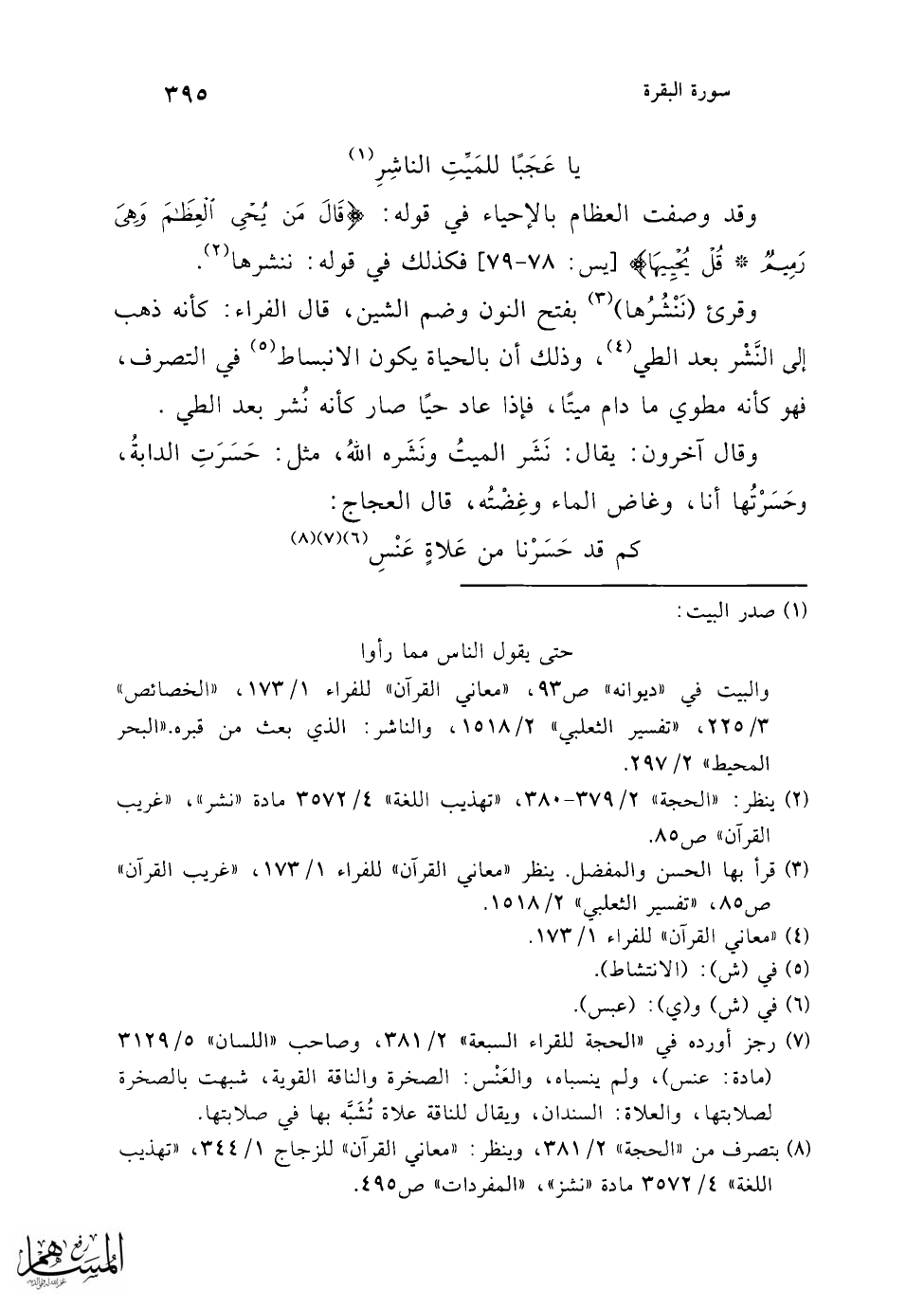 (¬5) ينظر: "تفسير الثعلبي" 2/ 1518، و"تفسير القرطبي" 3/ 188، "البحر المحيط" 2/ 293.