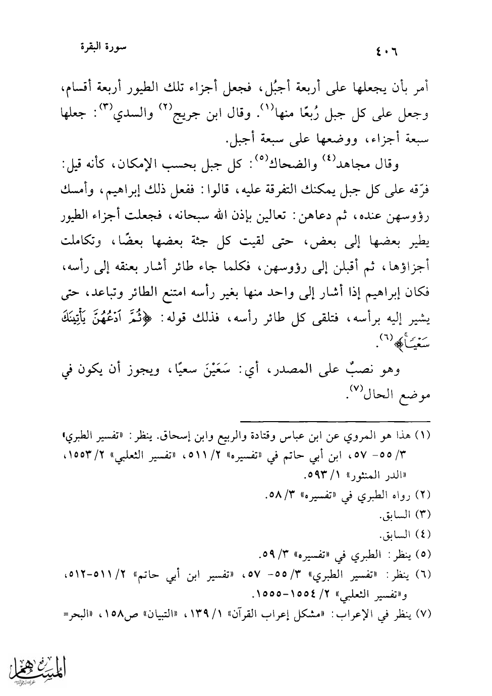وفي سعيها إلى إبراهيم دليل صحة إقدامها، وعود عظامها إلى مفاصلها، ولو طارت إليه لم يكن في طيرانها هذه الدلالة (¬1) {وَاعْلَمْ أَنَّ اللَّهَ عَزِيزٌ} لا يمتنع عليه ما يريد (¬2) {حَكِيمٌ} فيما يدبر ويفعل.