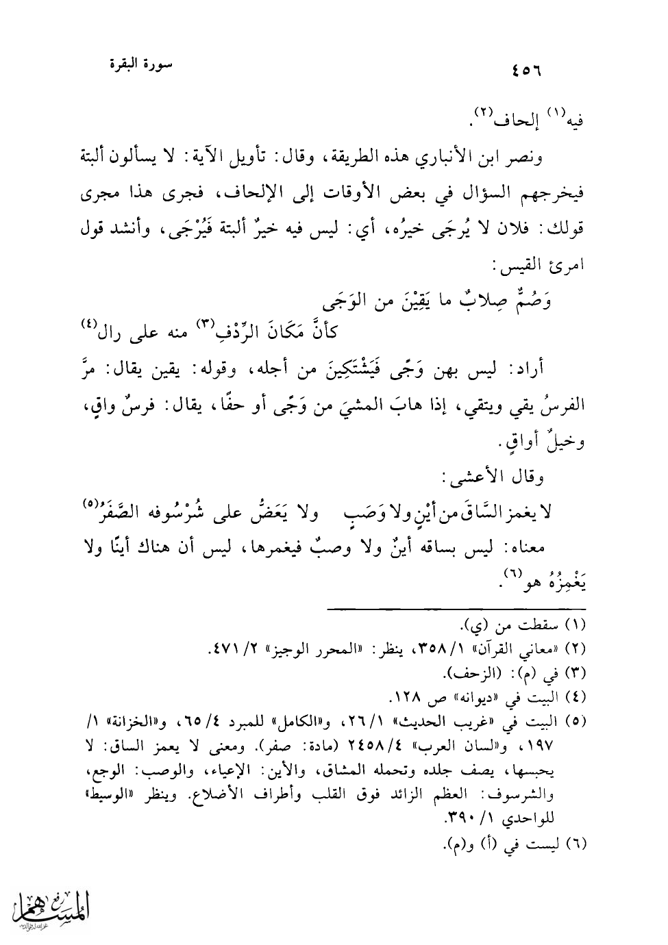 (¬2) البيت لعمرو بن أحمر في وصف فلاة، في "ديوانه" ص 67، "الخزانة" 2734. "شرح أشعار الهذليين" 1/ 36، "الخصائص" 3/ 164،321، "الحجة" لأبي علي 2/ 47 المعنى: نفى أن يكون في الفلاة حيوان.