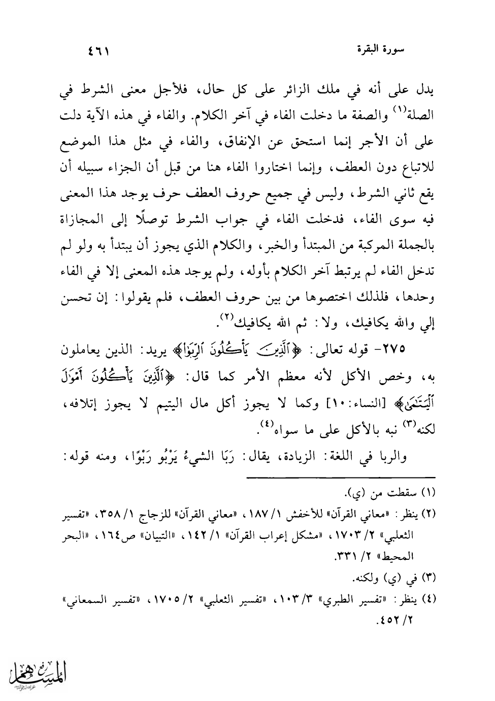 (¬2) ينظر: في الربا: "تهذيب اللغة" 2/ 1334 - 1335، "المفردات" ص193، "اللسان" 3/ 1572 - 1574.