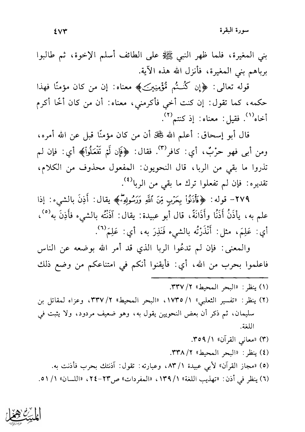 (¬5) "تفسير الثعلبي" 2/ 1736، و"الكفاية في التفسير" للحيري 1/ 266، "تفسير البغوي" 1/ 344.