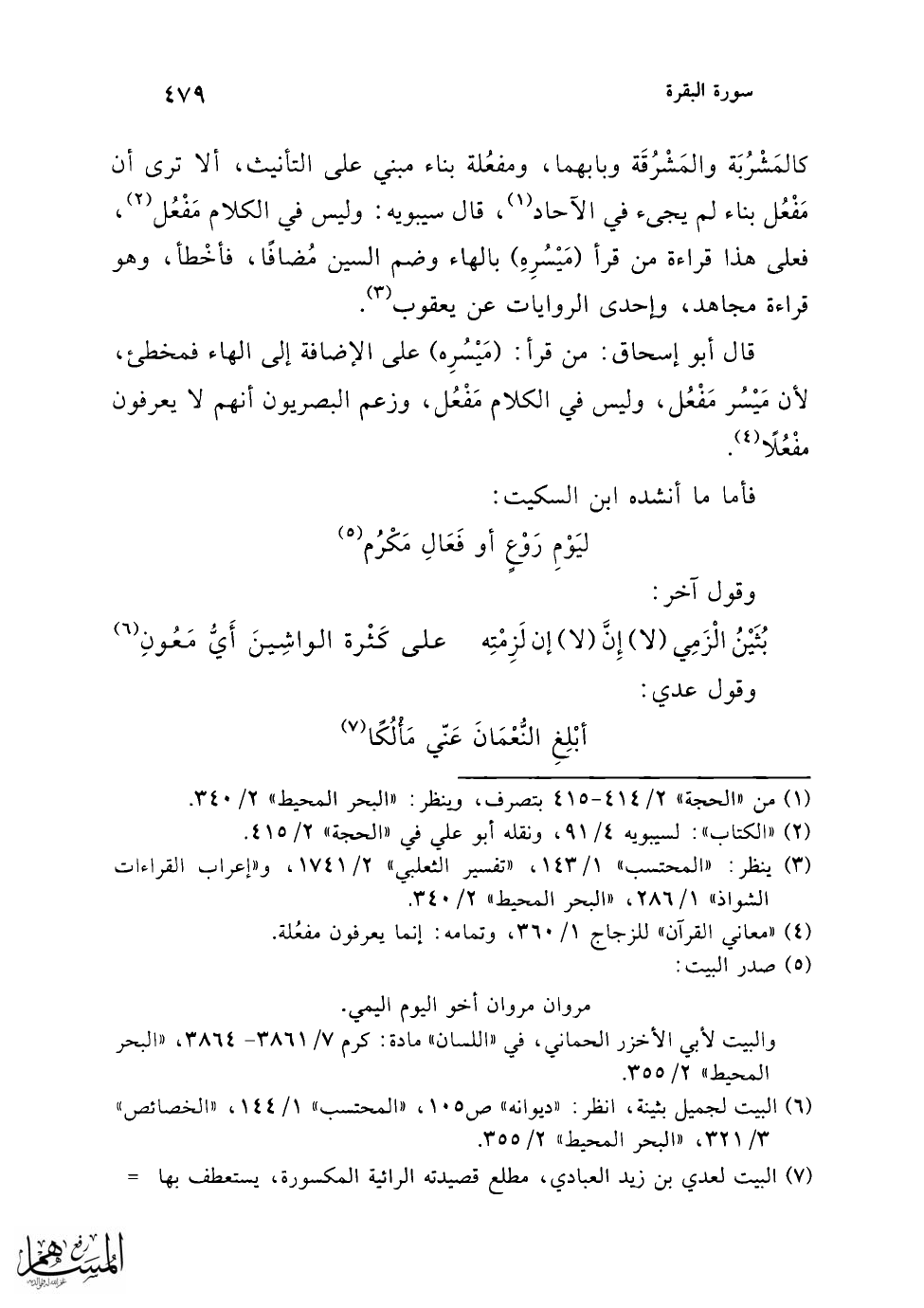 (¬3) من "الحجة" 2/ 416 - 417 بمعناه.