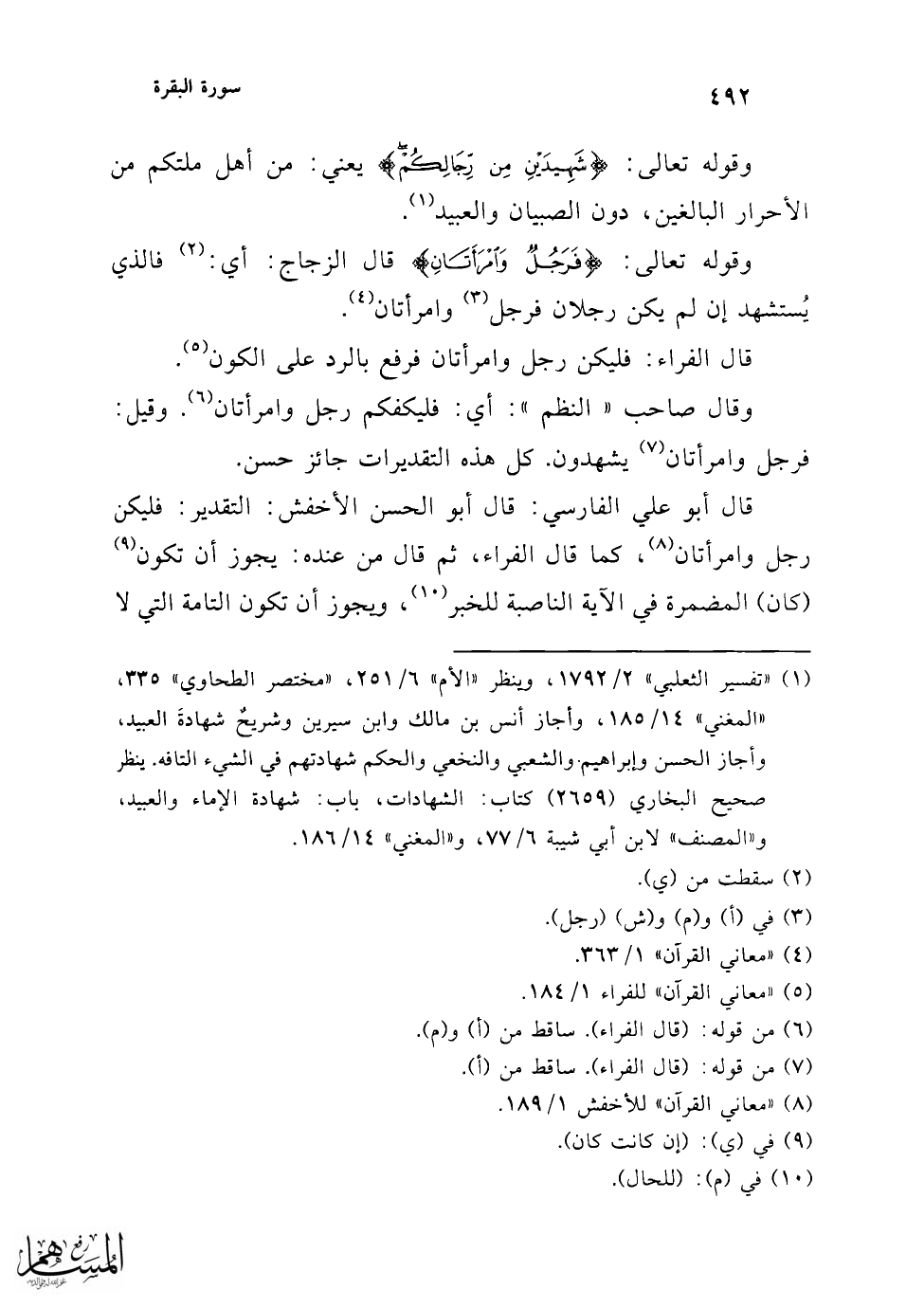 وقوله تعالى: {مِمَّنْ تَرْضَوْنَ مِنَ الشُّهَدَاءِ} قال ابن عباس: يريد: من
