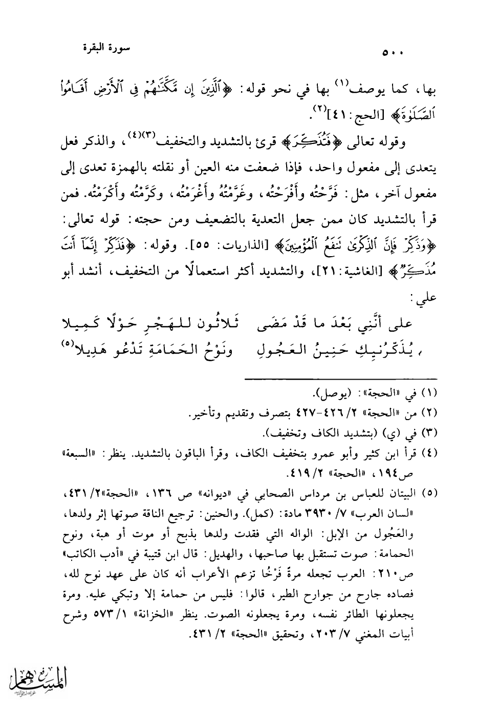 (¬1) من "الحجة" 2/ 431 - 432 بتصرف وتقديم وتأخير، وينظر: "حجة القراءات" لابن زنجلة ص 151، "علل القراءات" للأزهري 1/ 100.