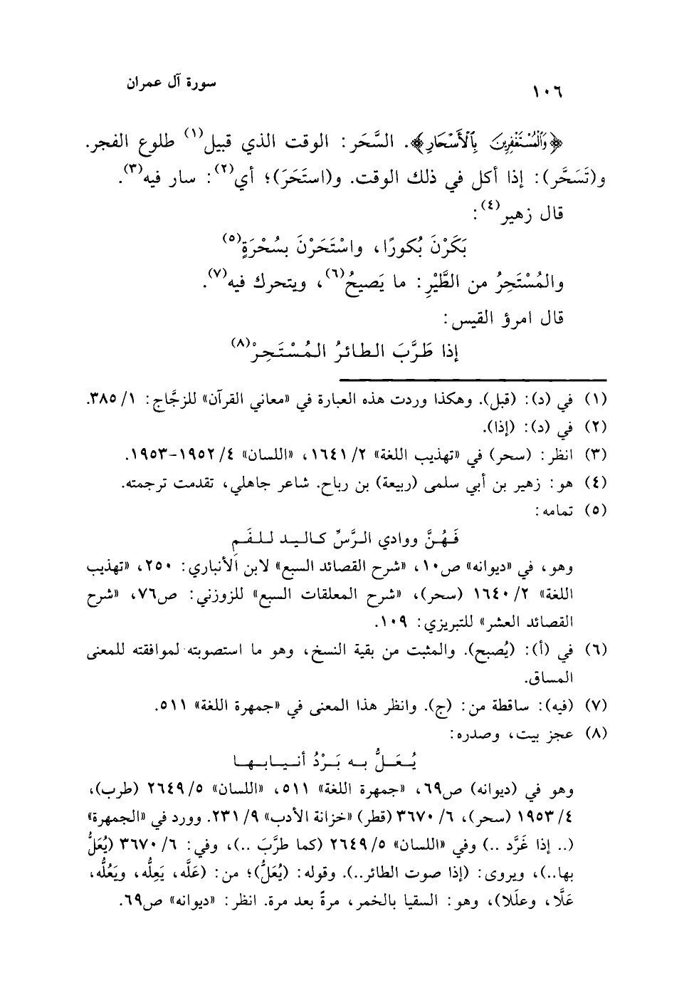 (¬3) انظر: (سحر) في "تهذيب اللغة" 2/ 1641، "اللسان" 4/ 1952 - 1953.