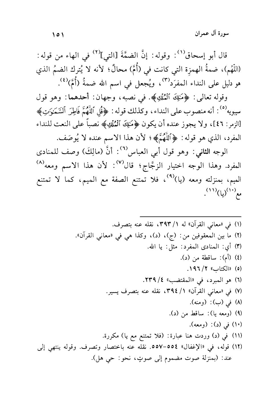 قال أبو إسحاق (¬1): وقوله: إنَّ الضمَّةَ [التي] (¬2) في الهاء من قوله: (اللهُم)، ضمةُ الهمزِة التي كانت في (أُمَّ) محالٌ؛ لأنه لا يُترك الضمُ الذي هو دليل على النداء المفرَد (¬3)، ويُجعل في اسم الله ضمةُ (أُمَّ) (¬4).