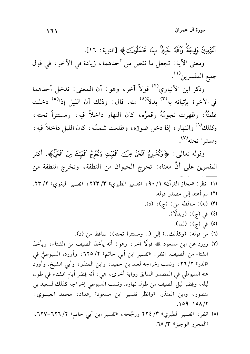 (¬7) وورد عن ابن مسعود -رضي الله عنه- قولًا آخر، وهو: أنه يأخذ الصيف من الشتاء، ويأخذ الشتاء من الصيف. انظر: "تفسير ابن أبي حاتم" 2/ 625، وأورده السيوطي في "الدر" 2/ 26، ونسب إخراجه لعبد بن حميد، وابن المنذر، وأبي الشيخ. وأورد عنه السيوطي في المصدر السابق رواية أخرى، هي: أنه قِصَر أيام الشتاء في طول ليله، وقِصَر ليل الصيف من طول نهاره ونسب السيوطي إخراجه كذلك لسعيد بن منصور، وابن المنذر. "وانظر تفسير ابن مسعود" إعداد: محمد العيسوي: 2/ 158 - 159.