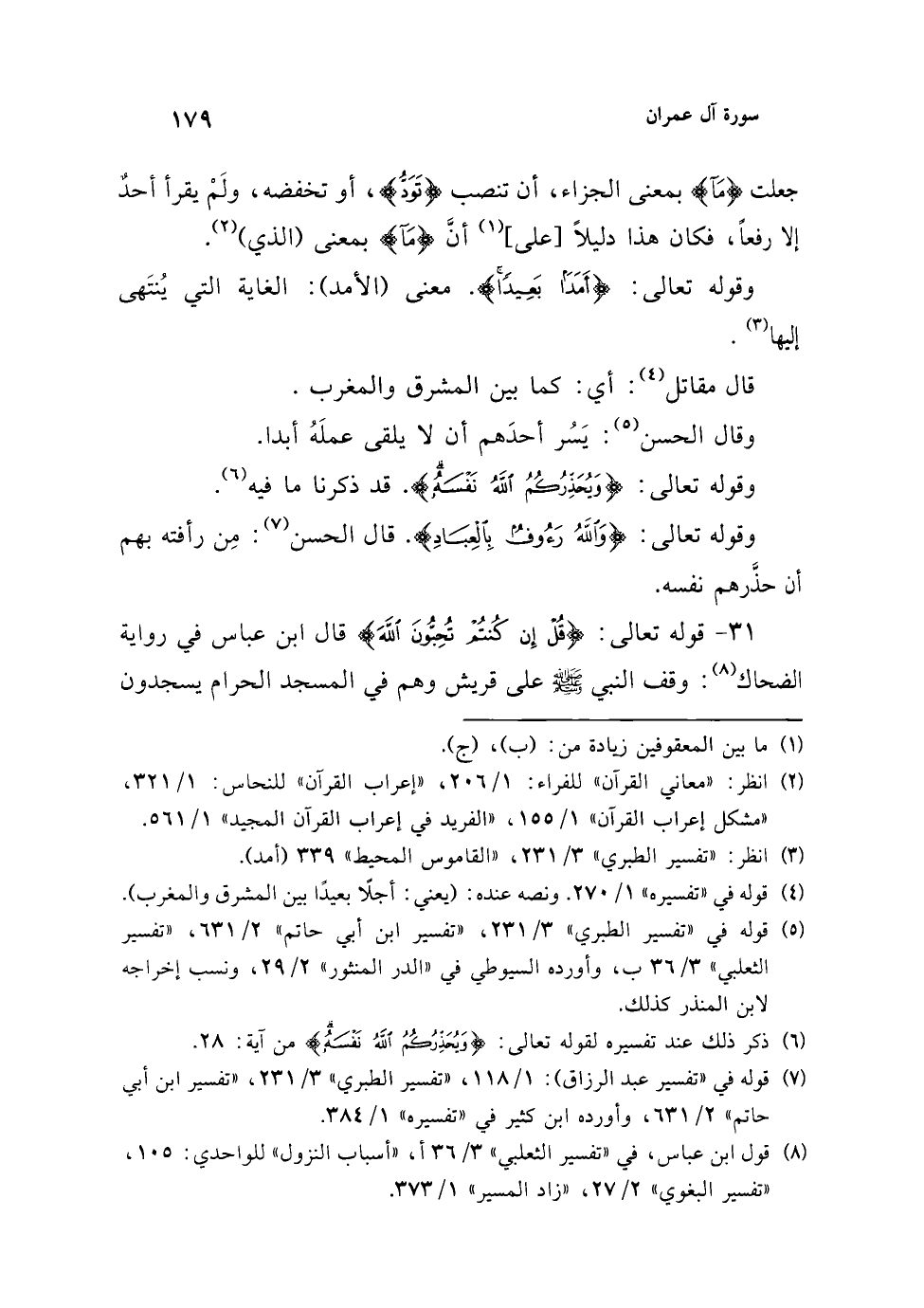 (¬2) انظر: "معاني القرآن" للفراء: 1/ 206،"إعراب القرآن" للنحاس: 1/ 321، "مشكل إعراب القرآن" 1/ 155، "الفريد في إعراب القرآن المجيد" 1/ 561.
