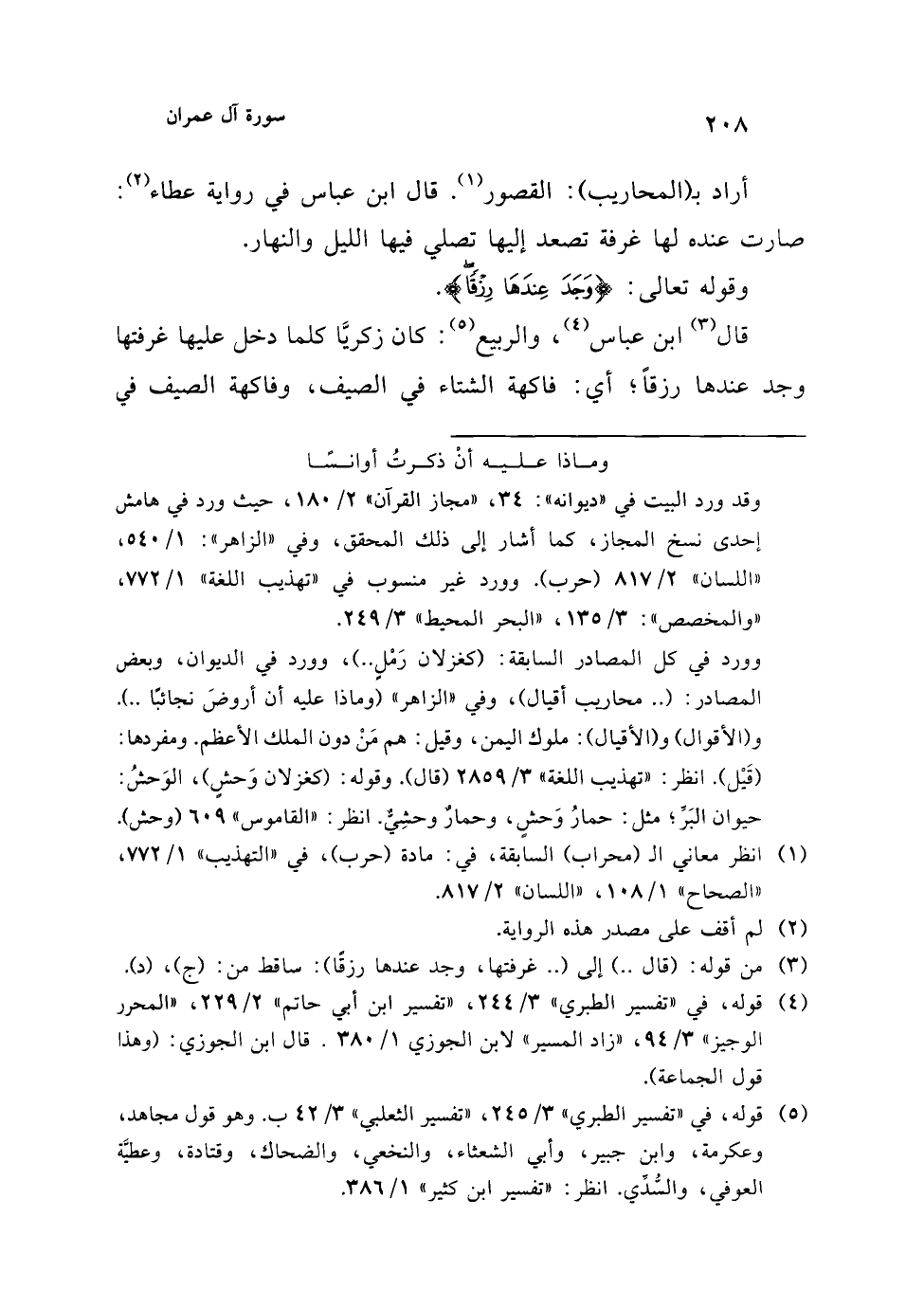 (¬1) انظر معاني الـ (محراب) السابقة، في: مادة (حرب)، في "التهذيب" 1/ 772، "الصحاح" 1/ 108، "اللسان" 2/ 817.